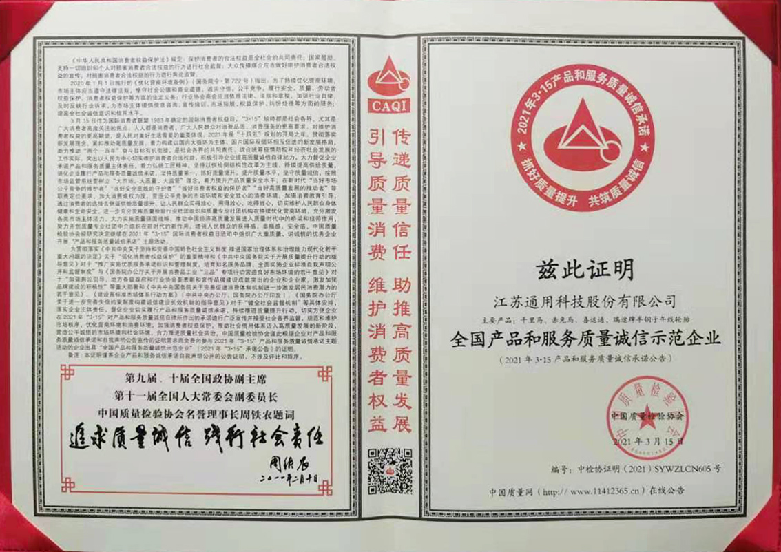 近日,在由中國質(zhì)量檢驗協(xié)會主辦的2021年3·15國際消費(fèi)者權(quán)益日產(chǎn)品和服務(wù)質(zhì)量誠信承諾主題活動中,通用股份憑借優(yōu)質(zhì)的產(chǎn)品性能、穩(wěn)