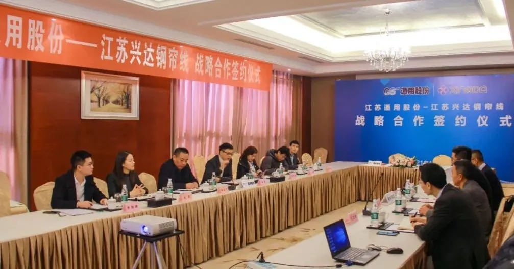 1月29日,通用股份與江蘇興達(dá)鋼簾線股份有限公司舉辦戰(zhàn)略合作簽約儀式,通用股份董事長顧萃、聯(lián)席總經(jīng)理程金元,興達(dá)集團(tuán)總經(jīng)理劉祥、