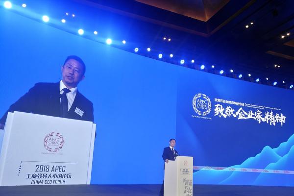 7月7日,中國民間商會副會長、APEC中國工商理事會副主席、紅豆集團董事局主席兼CEO周海江在北京出席2018 APEC工商領(lǐng)導(dǎo)人中國論壇,