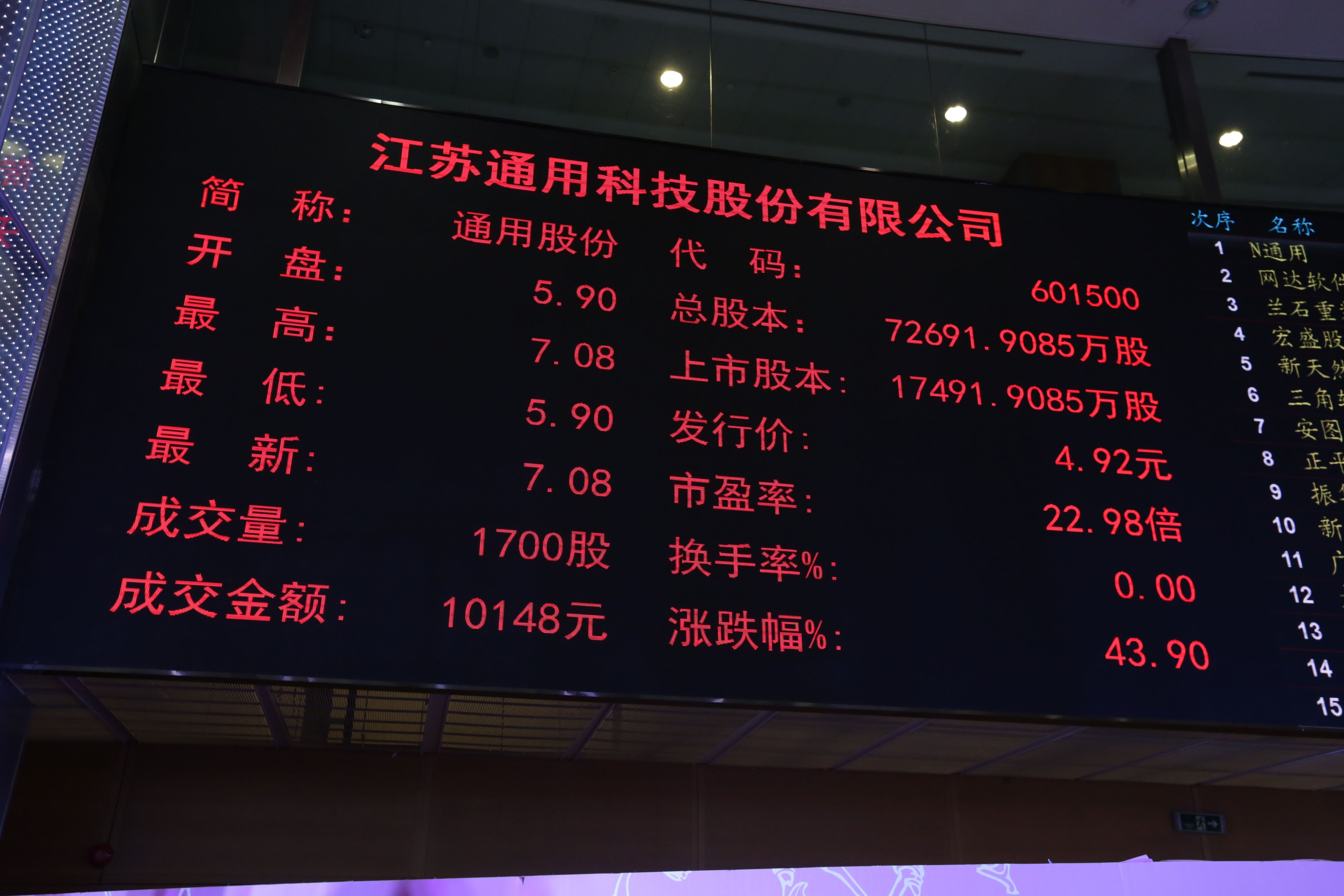 股市開盤,通用股份開盤價達(dá)5.9元,隨后股價被推至7.08元,較發(fā)行價上漲43.90 %,牢牢地封在漲停板上,充分說明資本市場對通用股份的信心。通用股份將充分利用上市契機(jī),以打造民族輪胎高端品牌為己任,成為具有國際影響力的中國輪胎標(biāo)桿企業(yè),為社會創(chuàng)造價值,給廣大投資者創(chuàng)造財富!