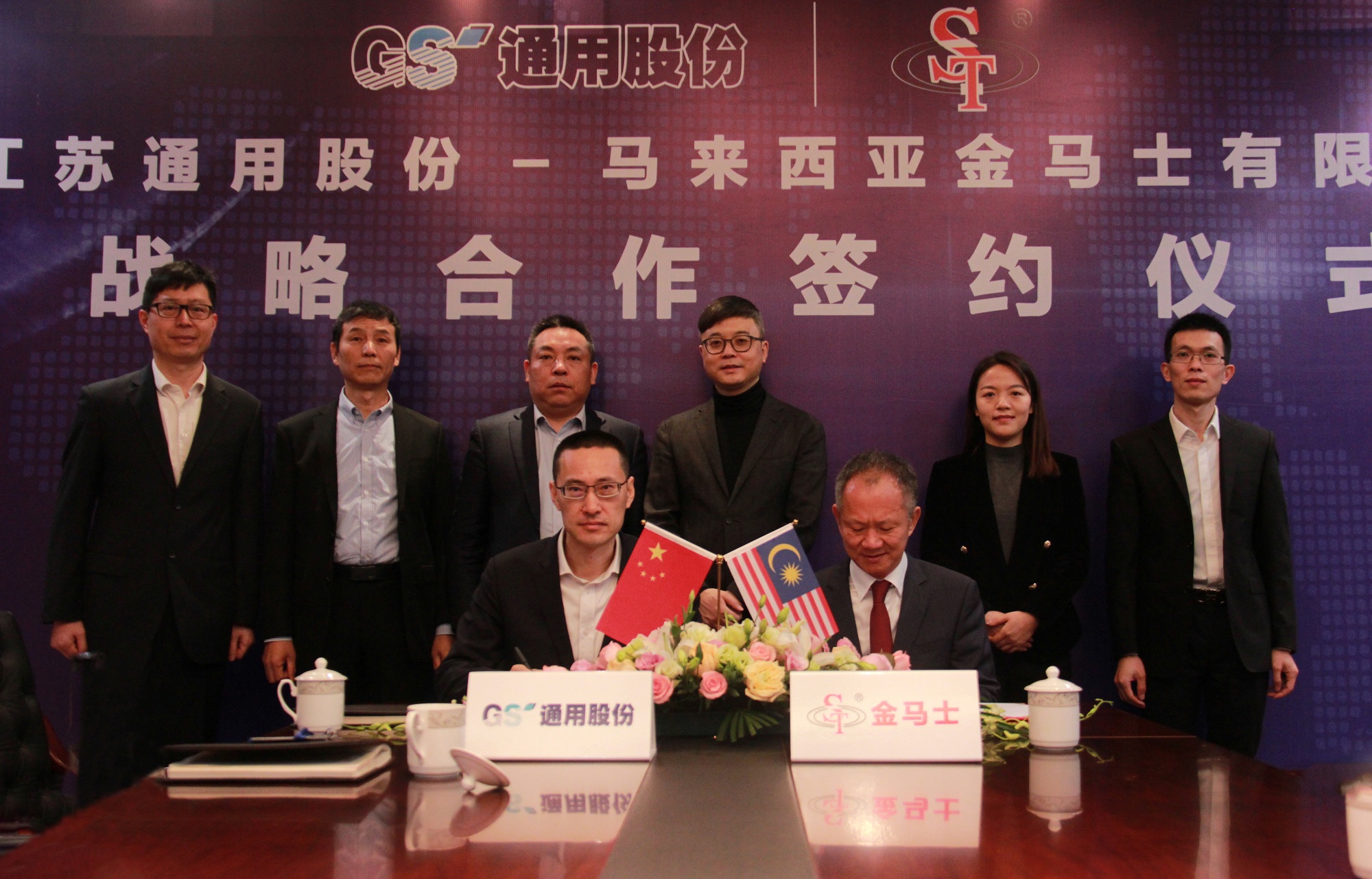 2019年3月22日,通用股份分別與輪胎供應(yīng)鏈領(lǐng)域的兩大巨頭——卡博特、金馬士開展戰(zhàn)略合作簽約儀式。通用股份董事長顧萃、總經(jīng)理王曉軍、常務(wù)副總經(jīng)理程金元,卡博特全球副總裁陳敦孝、金馬士董事長余福來等出席簽約儀式。