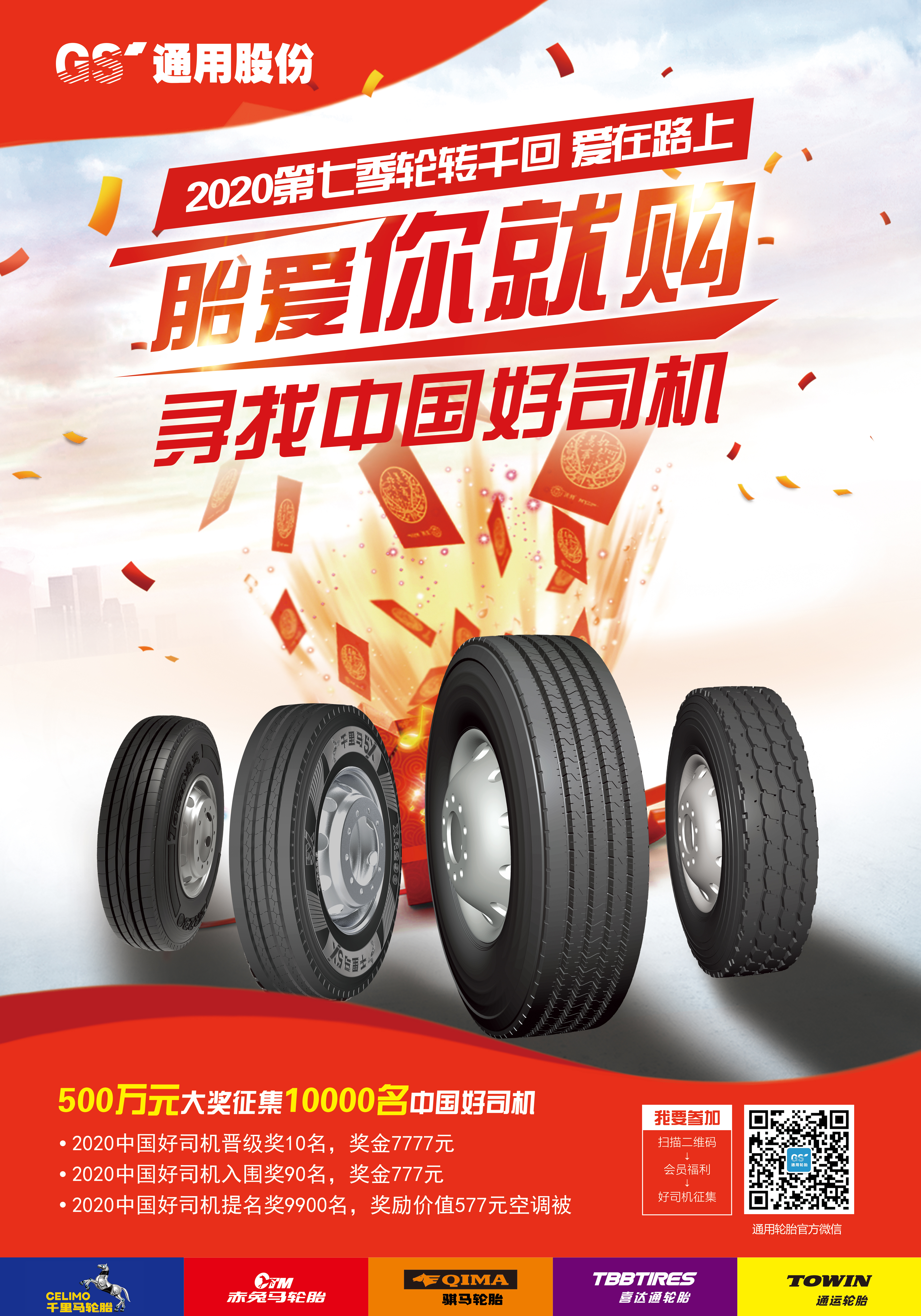有一群人,他們長期奔波在外,清晨,深夜,無論何時,他們都在道路上馳騁,漫漫長路,讓他們不僅經(jīng)常與家人分離,還與孤獨相處,他們就是中國3000萬卡車司機(jī)。本次“胎愛你就購”七夕紅粉季,為了走近卡車人的生活,了解他們生活的悲歡喜樂,展示中國卡車司機(jī)的正能量,在優(yōu)惠回饋的基礎(chǔ)上,通用股份福利再升級,重磅推出“尋找中國好司機(jī)”活動,為中國卡車司機(jī)提供展示自我風(fēng)采的舞臺,不僅有機(jī)會獲得精美好禮,最高還能贏得7777元現(xiàn)金大獎。