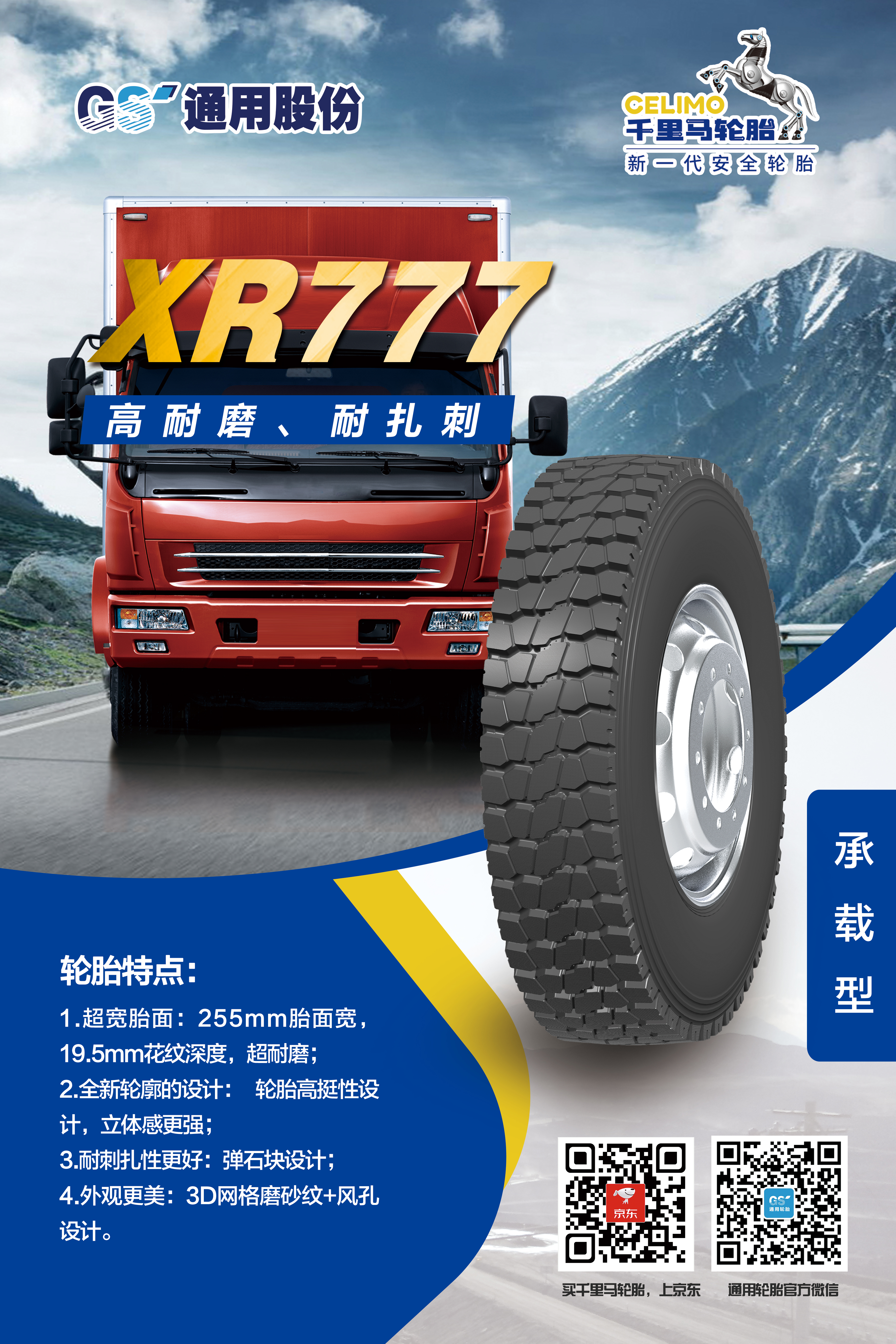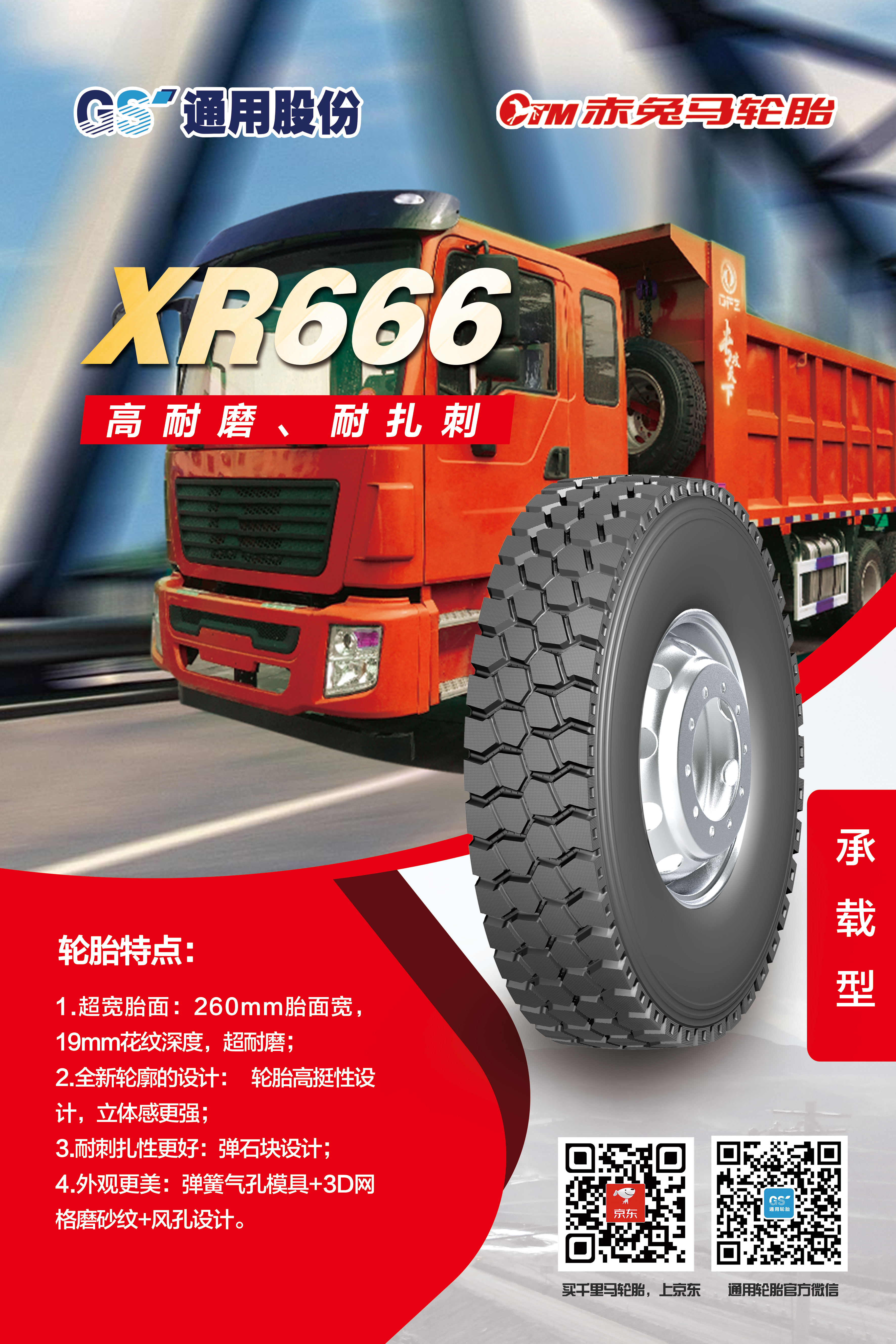 為適應(yīng)不斷變化的市場環(huán)境,滿足消費者對輪胎性能的更高需求,通用股份以創(chuàng)新為突破口,應(yīng)用新進技術(shù),在承載能力上實現(xiàn)突破,推出兩款專為中短途運輸車輛量身打造的承載新品——XR666、XR777。作為全新承載系列,XR666、XR777使用全新低生熱胎面配方,耐磨、生熱性能較公司同類產(chǎn)品提升20%以上,有效解決輪胎用戶痛點。除了性能優(yōu)異,兩款輪胎的顏值也十分出色,均采用3D網(wǎng)格磨砂花紋以及全新輪廓設(shè)計,簡潔而不失格調(diào),美觀而盡顯大氣。
