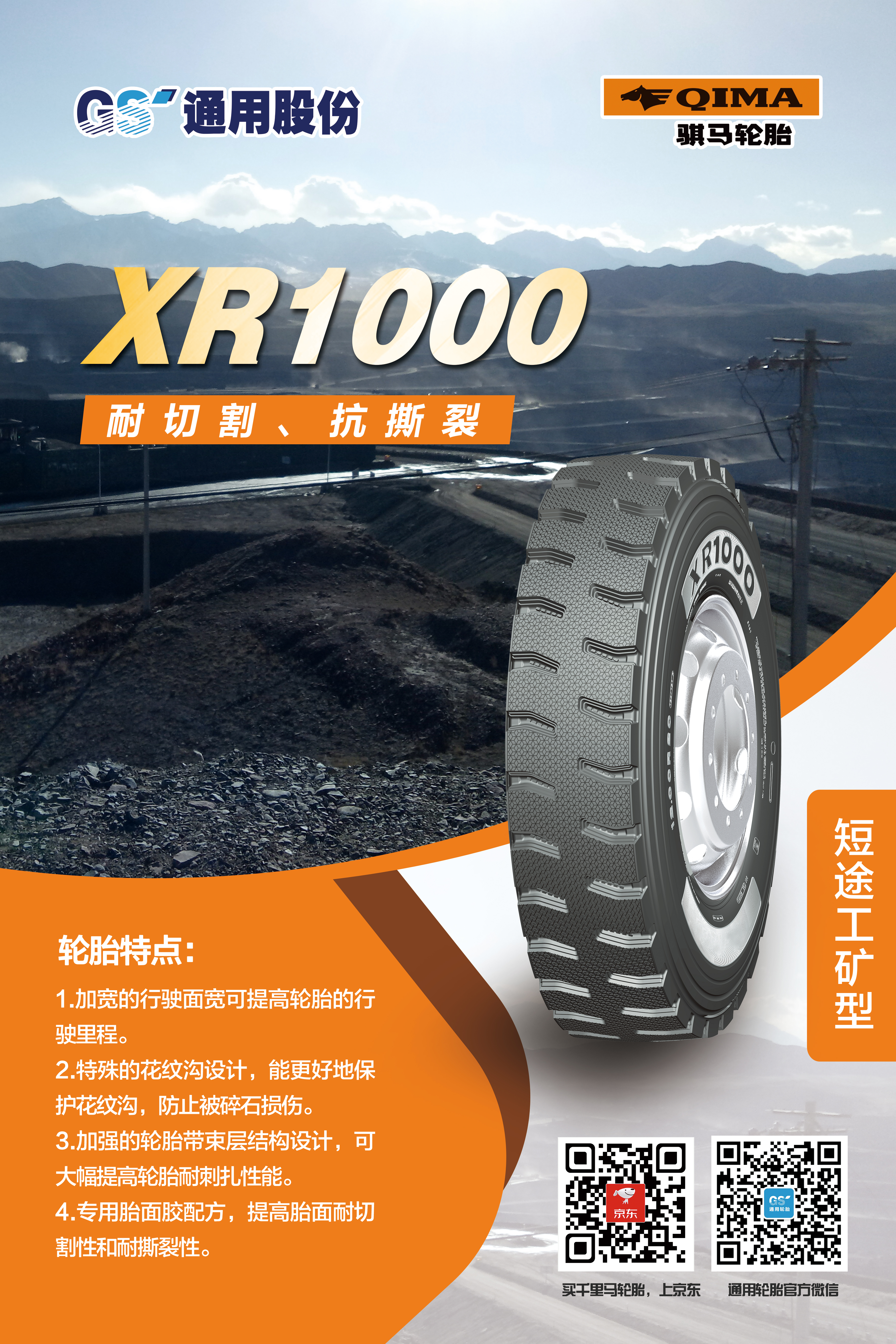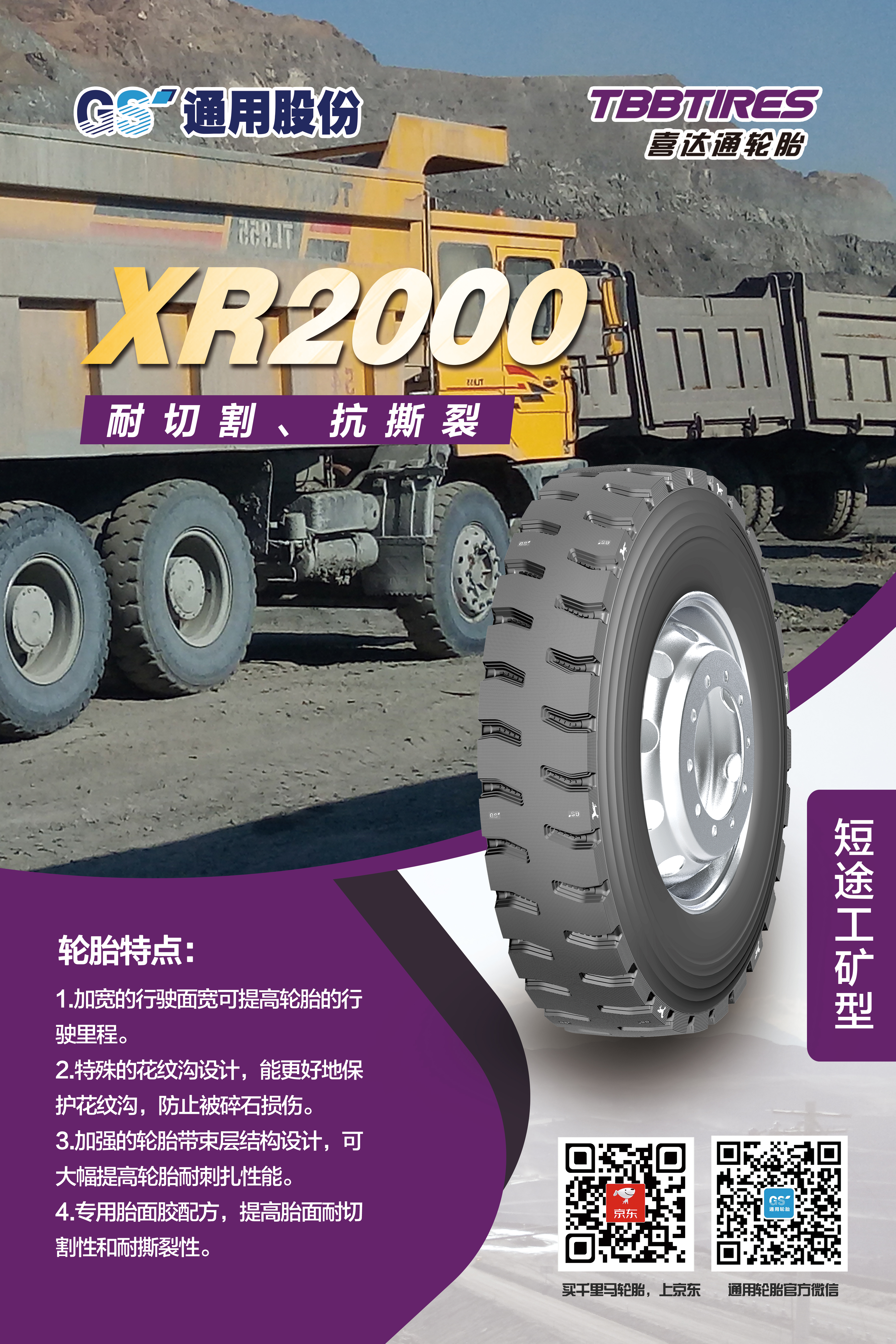 眾所周知,自2007年自主研發(fā)的第一代短途礦山胎問世,通用股份在行業(yè)率先開創(chuàng)了礦山胎這一品類,充分滿足礦區(qū)特殊使用條件和特點,備受中國礦山車司機的喜愛。近年來,通用股份立足國內(nèi)礦區(qū)路況特點,對輪胎花紋、配方、結(jié)構(gòu)等進一步升級,重磅推出礦山胎傳承之作——XR1000、XR2000。兩款輪胎均擁有全新的外觀設(shè)計、獨特的結(jié)構(gòu)設(shè)計、高耐磨配方設(shè)計。全新胎面配方的應(yīng)用,大幅提升胎面耐刺扎性能。加強的輪胎帶束層結(jié)構(gòu)設(shè)計,大幅提高輪胎耐扎刺性能。加寬的行駛面,有效提高輪胎行駛里程。相關(guān)數(shù)據(jù)表明,相比同類產(chǎn)品,耐久時數(shù)提升20%,胎圈耐久提升30%,是廣大礦山胎用戶的信心之選。