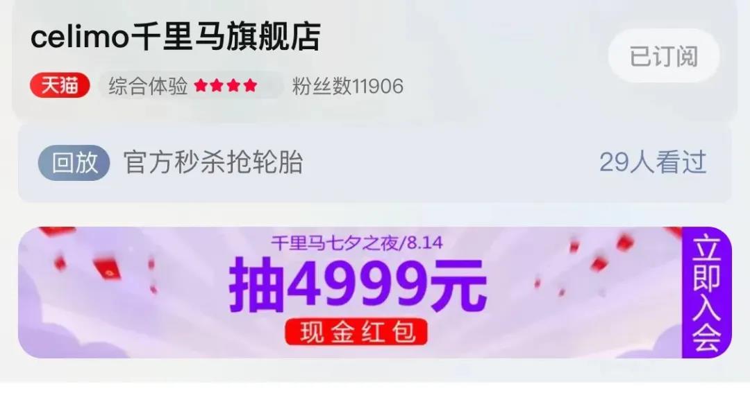 即日起至8月14日20:00點(diǎn)前,消費(fèi)者只要關(guān)注紅豆集團(tuán)旗下品牌如“celimo千里馬”天貓官方旗艦店,成為會(huì)員并消費(fèi)(不限金額)即可獲得4999元超大紅包的抽取資格。